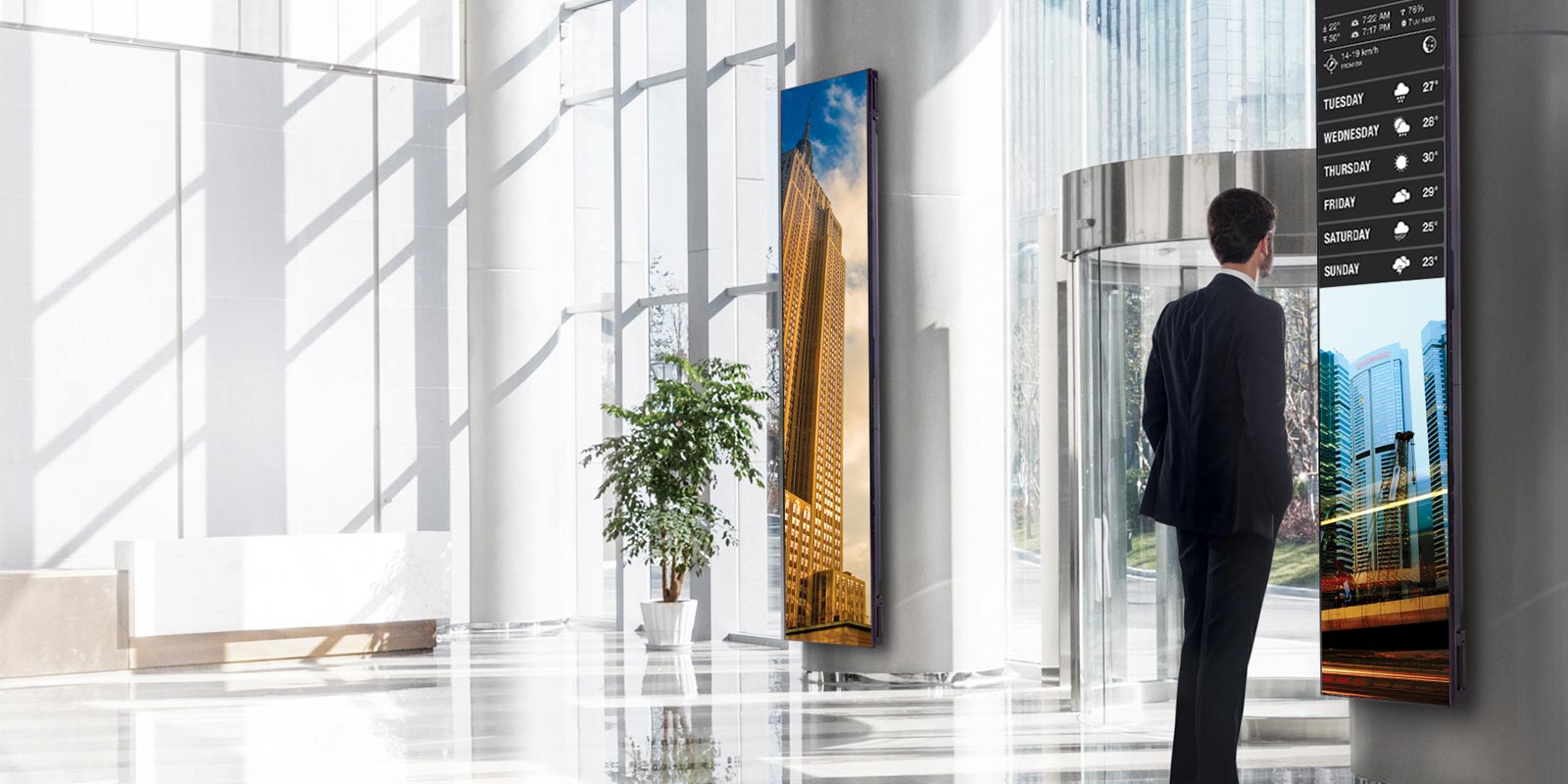 De plus, à l’ère des smartphones, la surabondance d’écran fait que l’on doit rester captiver par ce qu’affiche l’écran. Ainsi, des slides «attrape-regard», comme la météo, sont indispensables pour capter le regard des passants.